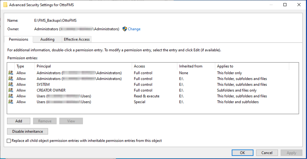 - Working directory: filewin:/E:/FMS_Backups/OttoFMS/