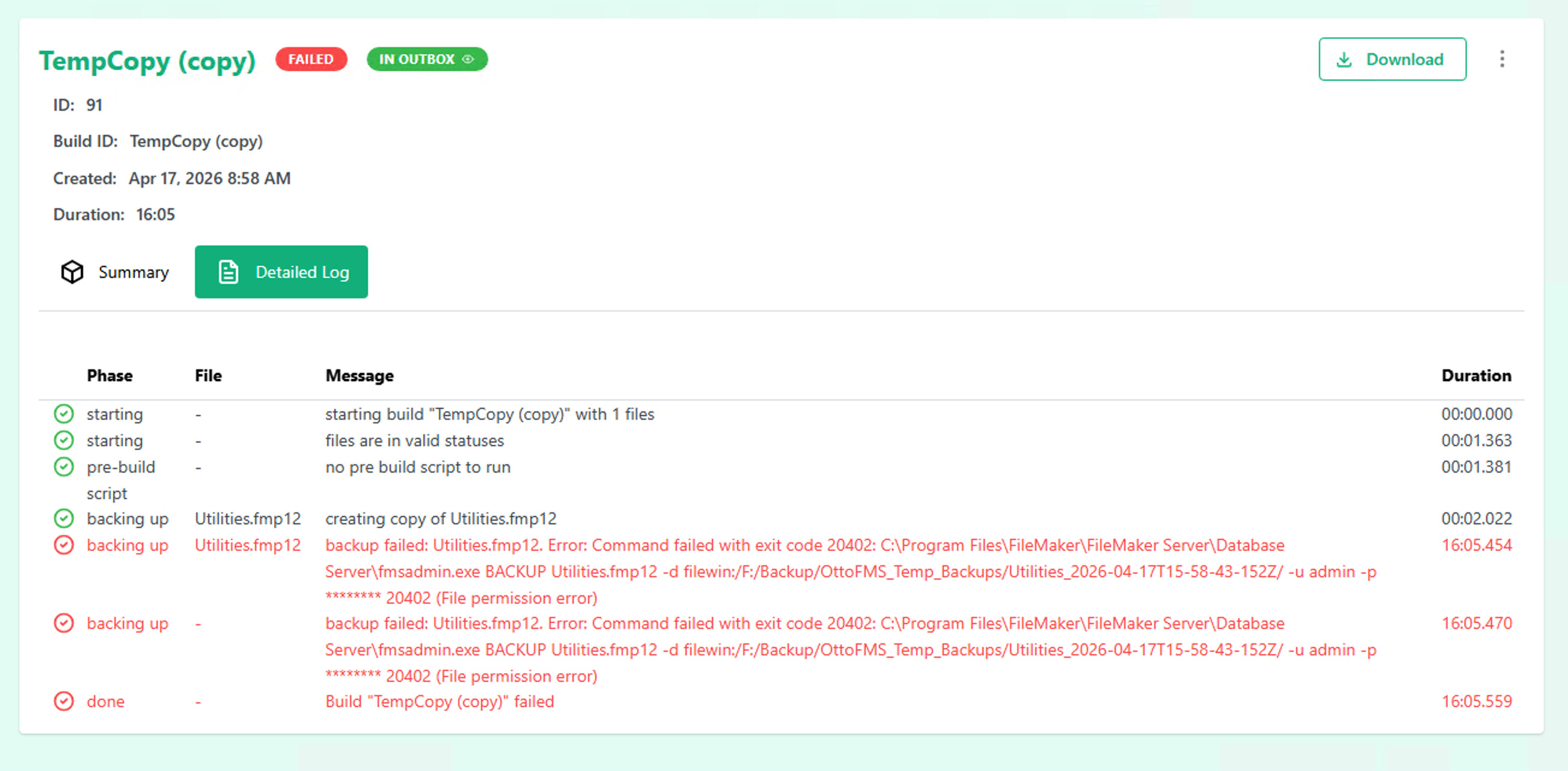 Just curious, in the two fmsadmin.exe command lines that are shown in the log, where is the password ( -p xxxxxxxxx) coming from? I don’t remember setting in OttomFMS for that password.