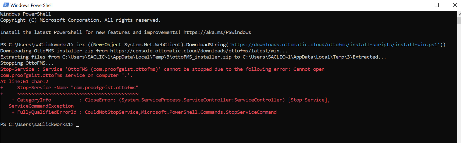 The script does not work for me. It refers to an error stopping the ottofms service. As the actual service name in Windows is just ‘OttoFMS’ it may appear that the service name in the script is wrong? This is the error